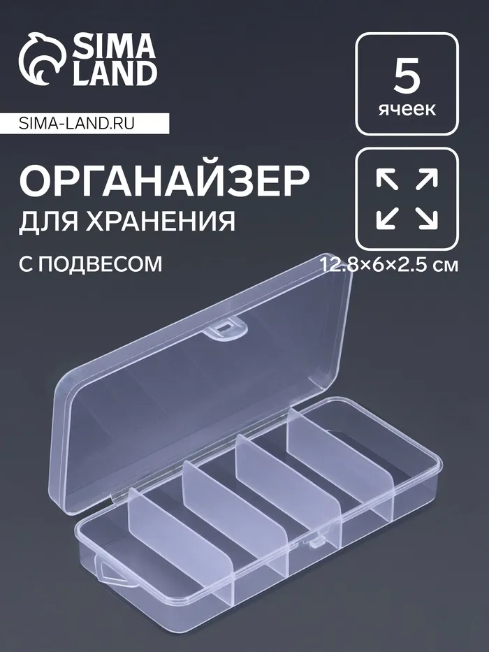 Органайзер для хранения мелочей, с подвесом, 5 ячеек, 12.8×6×2.5 см, прозрачный