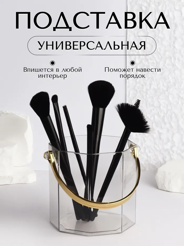 Органайзер - подставка для хранения косметики «CLEAN GOLD», с ручкой, восьмиугольный, d=12.5×12 см, цвет прозрачный/золотистый