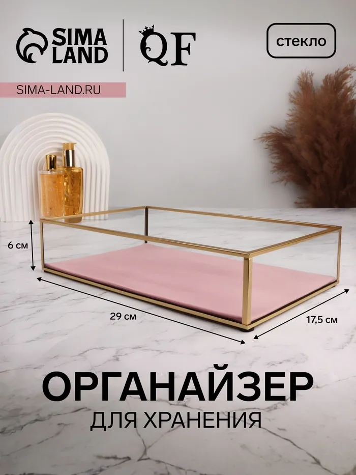 Органайзер для хранения «GREAT», стеклянный, с зеркальным дном, 29×17.5×6 см, цвет медный