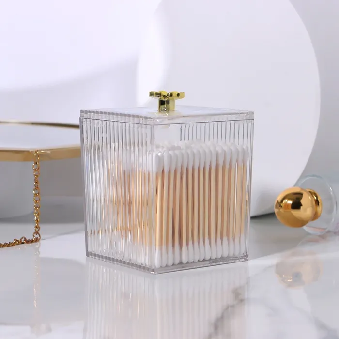 Органайзер для ватных палочек «FLOWER», с крышкой, 11×8.5×8.5 см, цвет прозрачный, золотистый