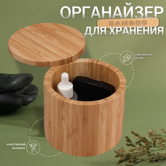 Органайзер для хранения «BAMBOO», с крышкой, раздвижной, d=12×10.5 см, коричневый