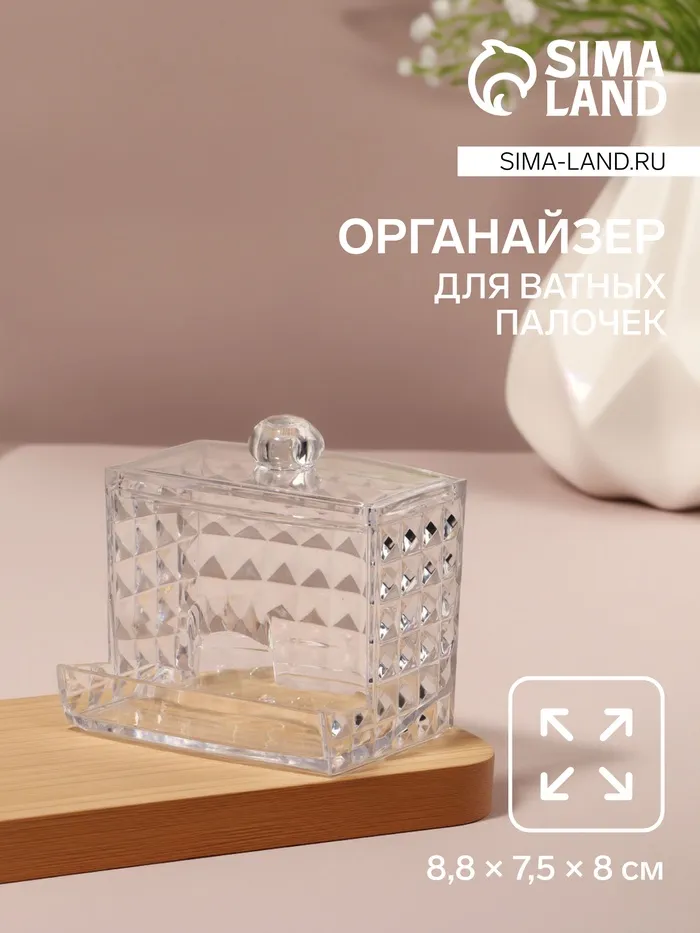 Органайзер для ватных палочек, с крышкой, 8.8×7.5×8 см, прозрачный