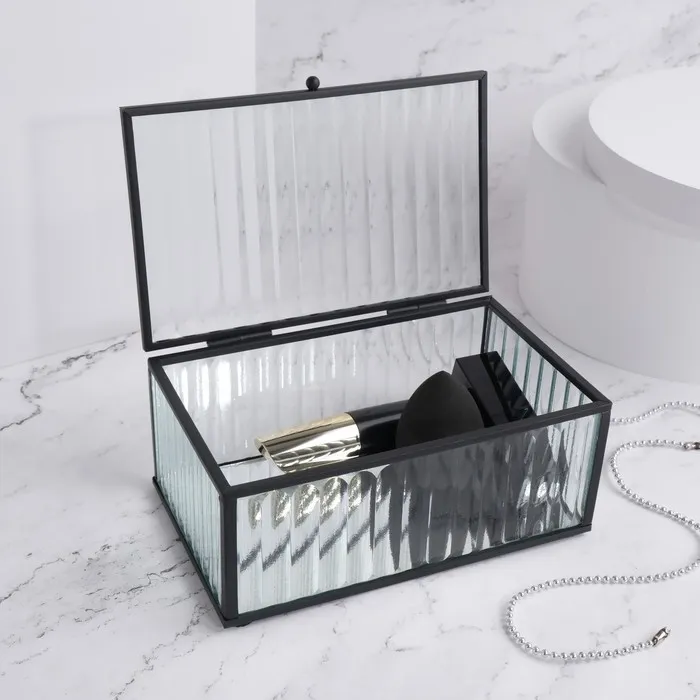 Органайзер для хранения «Ribbed», 1 секция, с крышкой, стеклянный, с зеркальным основанием, 17 × 10,5 см, цвет прозрачный/чёрный