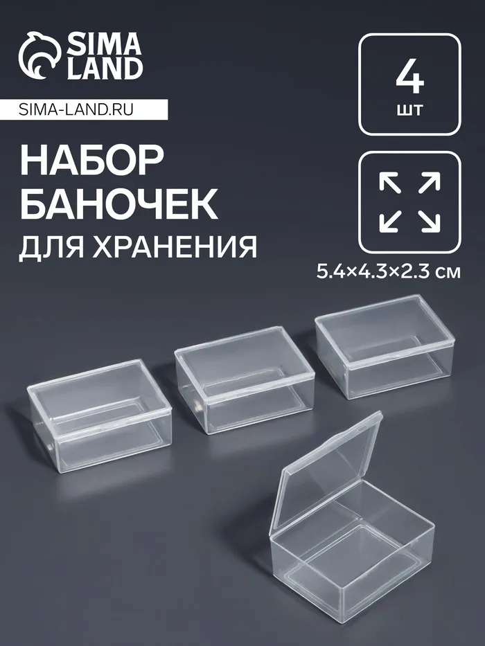 Набор баночек для мелочей, 5.4×4.3×2.3 см, 4 шт., прозрачный