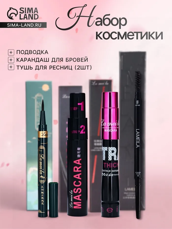 Набор декоративной косметики (подводка, карандаш для бровей, тушь для ресниц 2 шт)