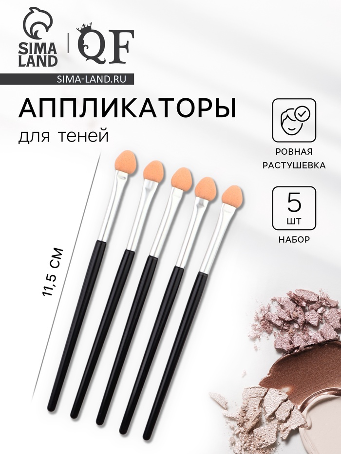 Набор аппликаторов для теней, 5 шт, 11,5 см, цвет чёрный