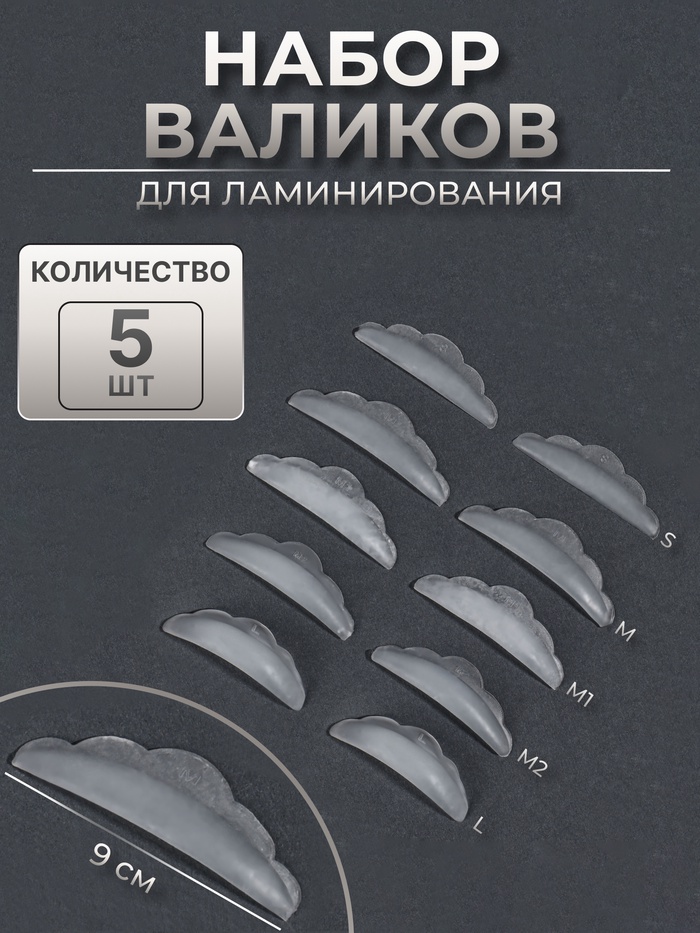 Валики для ламинирования ресниц, набор - 5 пар, силиконовые
