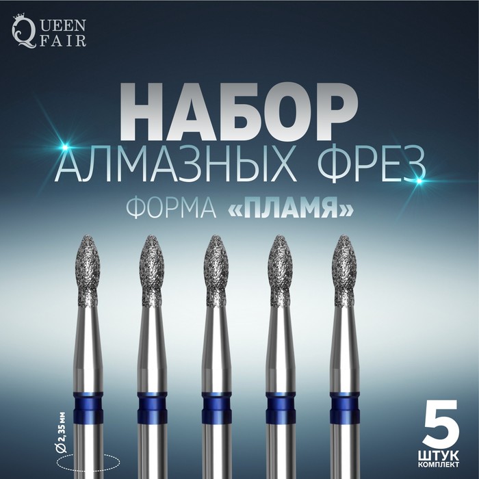 Фрезы алмазные для маникюра «Пламя», средняя зернистость, d 1,8 × 3 мм, 5 шт