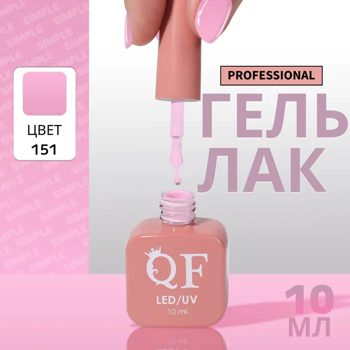 Гель лак для ногтей, однотонный, трехфазный, 10 мл, LED/UV, розовый (151)