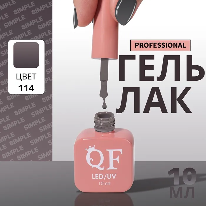 Гель лак для ногтей, однотонный, трехфазный, 10 мл, LED/UV, серый (114)