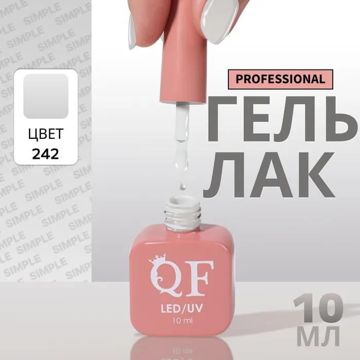 Гель лак для ногтей, однотонный, трехфазный, 10 мл, LED/UV, серый (242)
