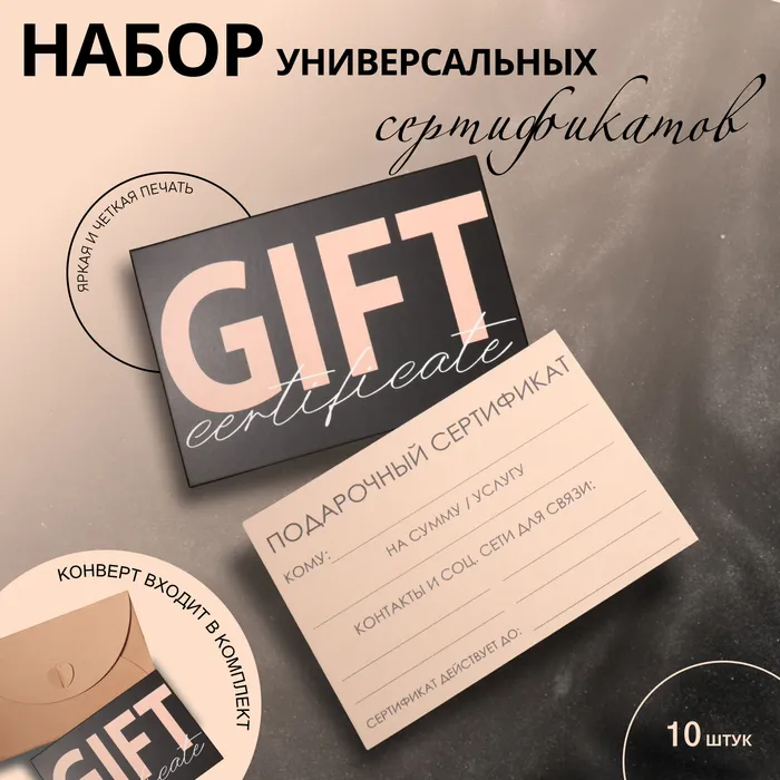 Набор подарочных сертификатов «MINIMALISM», 10 шт, с крафтовыми пакетами и наклейками, цвет нежно-розовый/чёрный
