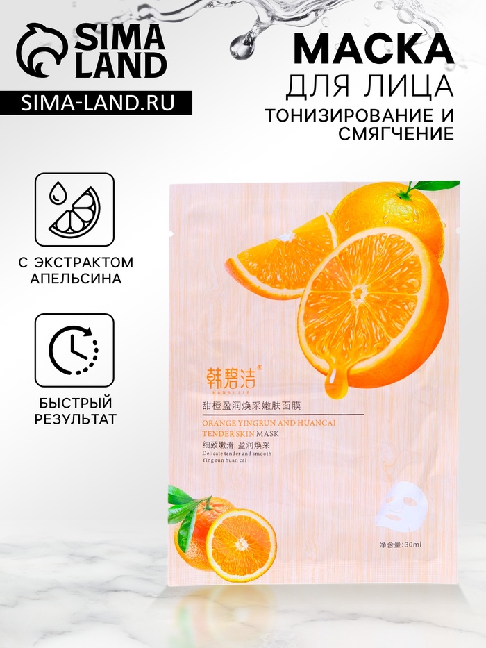 Маска тканевая для лица с экстрактом апельсина, тонизирование и смягчение кожи