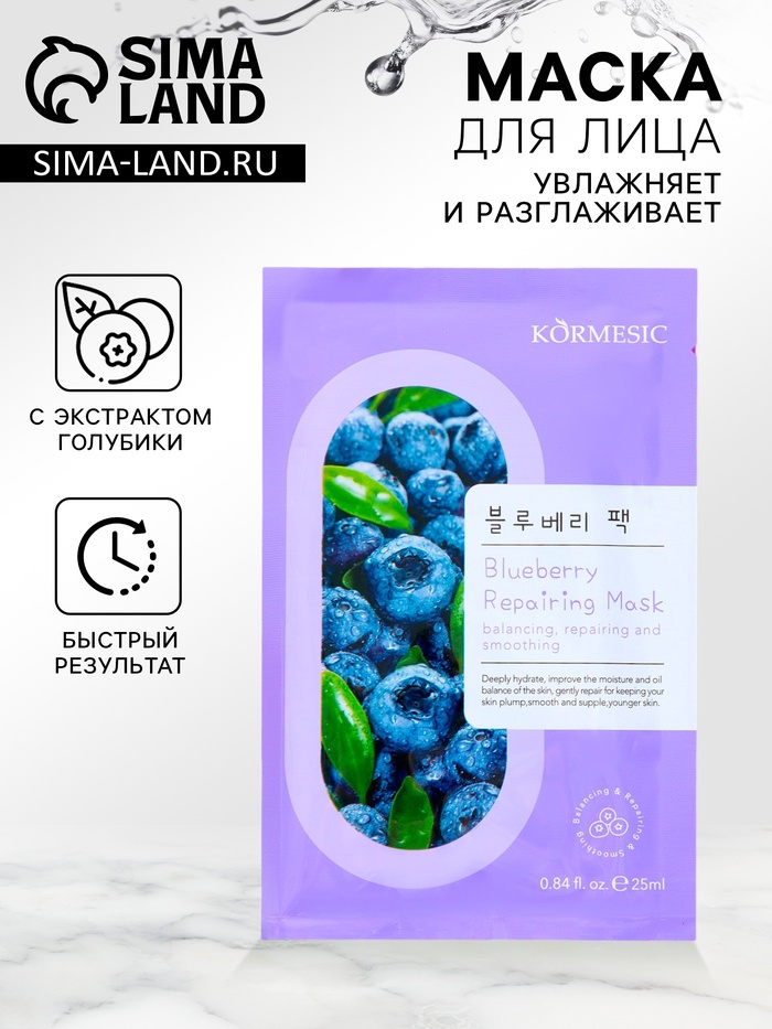 Маска тканевая увлажняющая для лица с экстрактом голубики