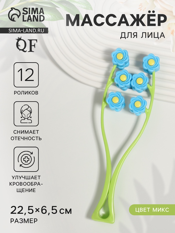 Массажёр для лица «Букет», 22.5×6.5×3.5 см, 12 роликов, МИКС