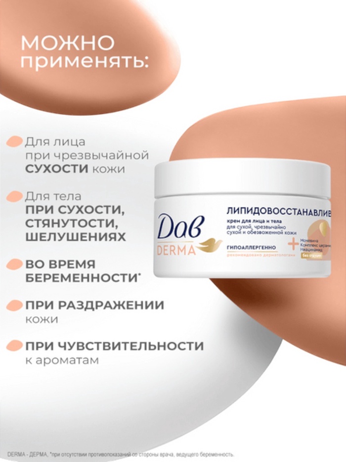 Крем для лица и тела «Дав», гипоаллергенный, липидовосстанавливающий, 285 мл