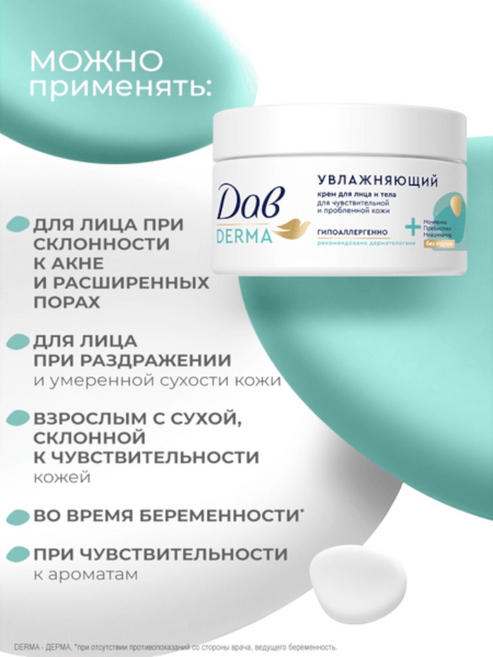 Крем для лица и тела «Дав», гипоаллергенный, увлажняющий, 285 мл
