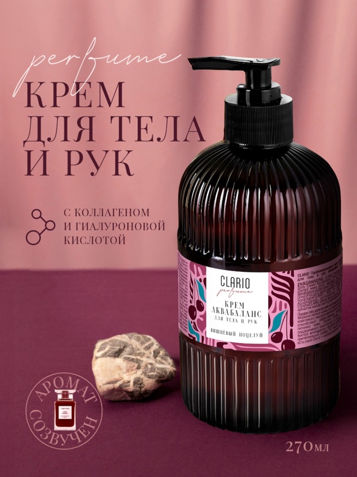 Крем аквабаланс для тела и рук парфюмированный CLARIO вишнёвый поцелуй, 270 мл