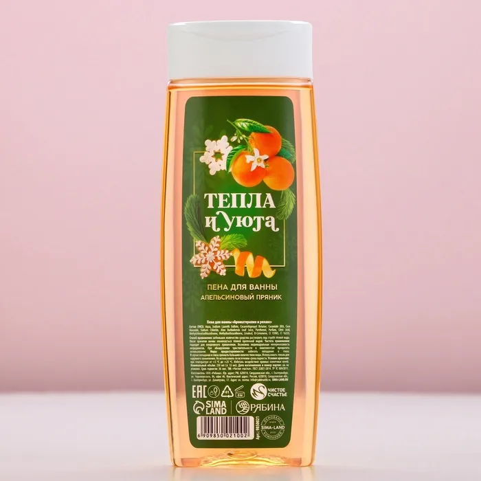 Пена для ванны «Тепла и уюта!», 250 мл, аромат апельсинового пряника, Чистое счастье