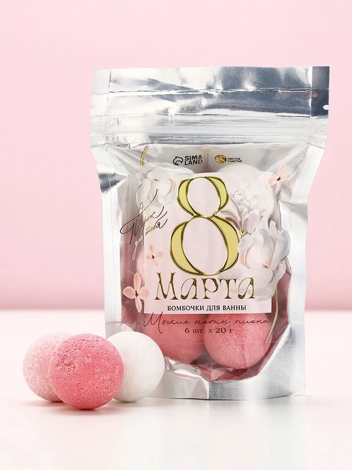 Бомбочки для ванны «С 8 Марта!», 6×20 г, Чистое счастье