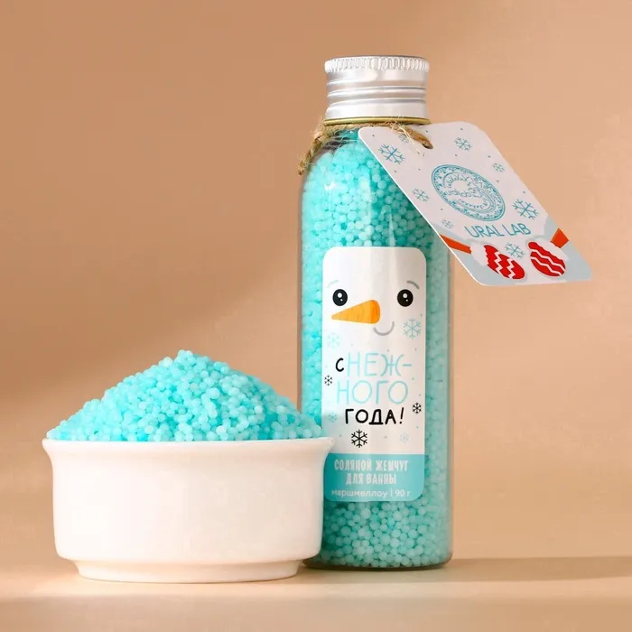 Жемчуг для ванны URAL LAB «Снеговик», 85 г, аромат маршмэллоу, Новый Год