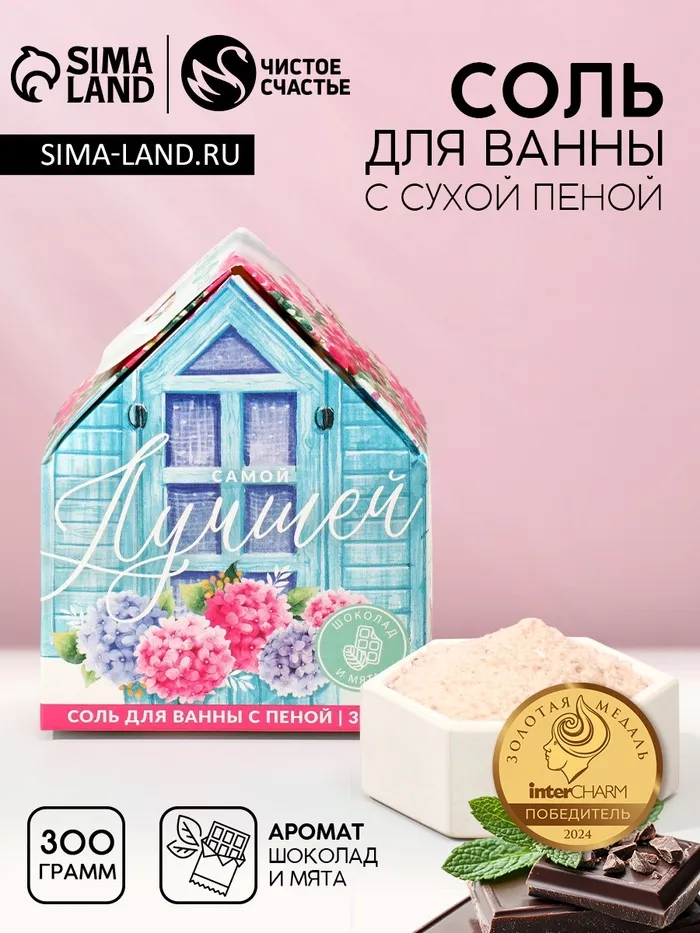 Соль для ванны с сухой пеной «Самой лучшей!», 300 г, аромат шоколада и мяты, Чистое счастье