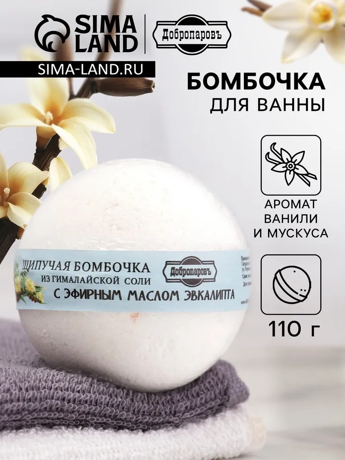 Бомбочка для ванн Добропаровъ из гималайской соли с эфирным маслом эвкалипт, 110 г