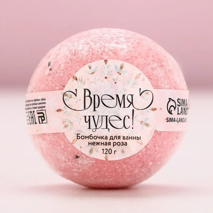 Бомбочка для ванны с лепестками розы «Время чудес!», 120 г, Чистое счастье