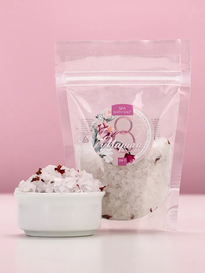 Соль для ванны «С праздником 8 марта», с лепестками розы, 150 г, Чистое счастье