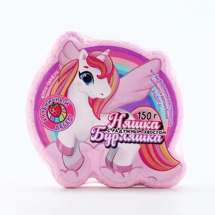 Бомбочка для ванны детская «Единорог», 150 г, аромат клубники, 3+, Чистое счастье