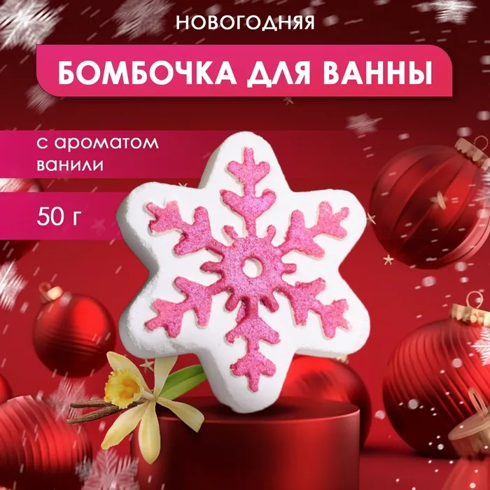 Бомбочка для ванны новогодняя с ароматом ванили «Снежинка», 50 г