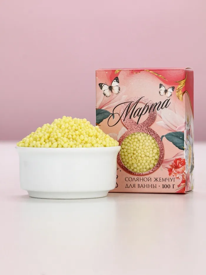 Соляной жемчуг для ванны 100 г «С 8 марта!», медовый аромат, Чистое счастье