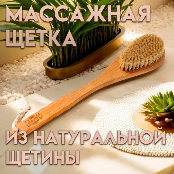 Щетка массажная с длинной ручкой, натуральная щетина «Добропаровъ» 38.5 см × 8 см × 4.5 см