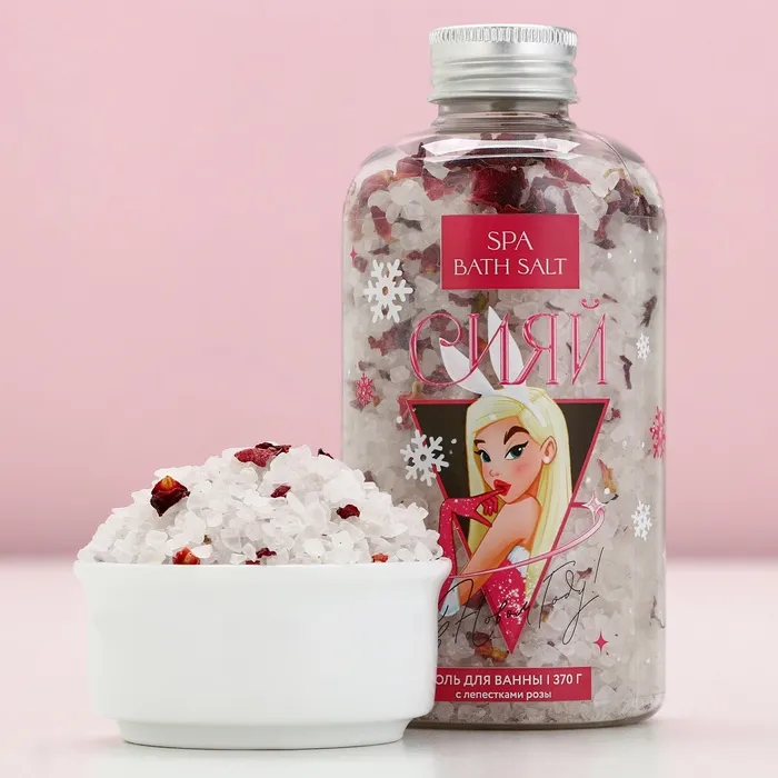 Соль для ванны с лепестками розы, 370 г, Чистое счастье