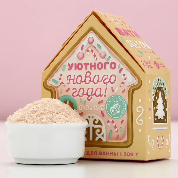Соль для ванны с сухой пеной «Уютного года», 300 г, аромат шоколада и мяты, Чистое счастье