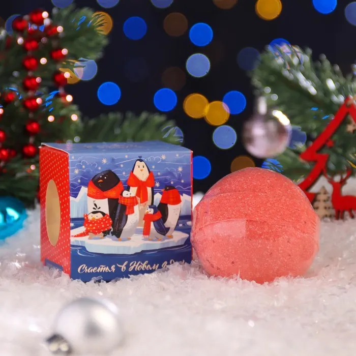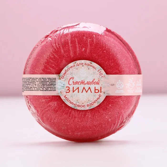 Бомбочка для ванны «Счастливой зимы!», 110 г, аромат малинового варенья, Чистое счастье