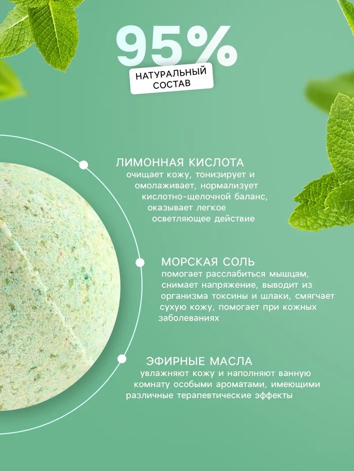 Бомбочка для ванн Добропаровъ с ароматом мяты, 110 г
