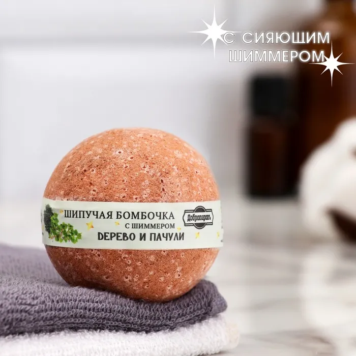 Бомбочка для ванны с шиммером "Добропаровъ" древесные ноты и пачули, 110 гр, коричневый