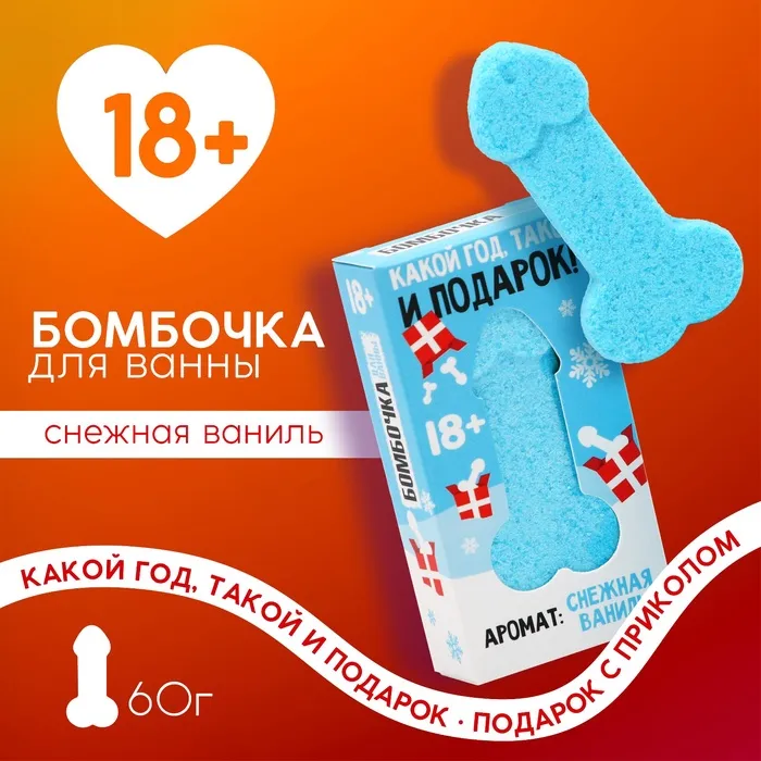 Бомбочка для ванны «Какой год, такой и подарок», 60 г, аромат ванили, 18+, Чистое счастье