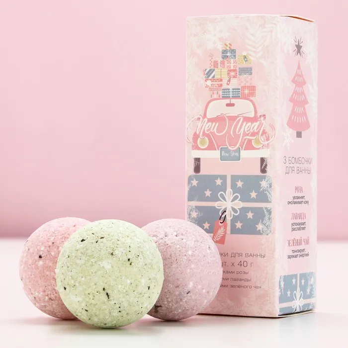 Бомбочки для ванны с добавками новогодние NEW YEAR, 3×40 г, Чистое счастье