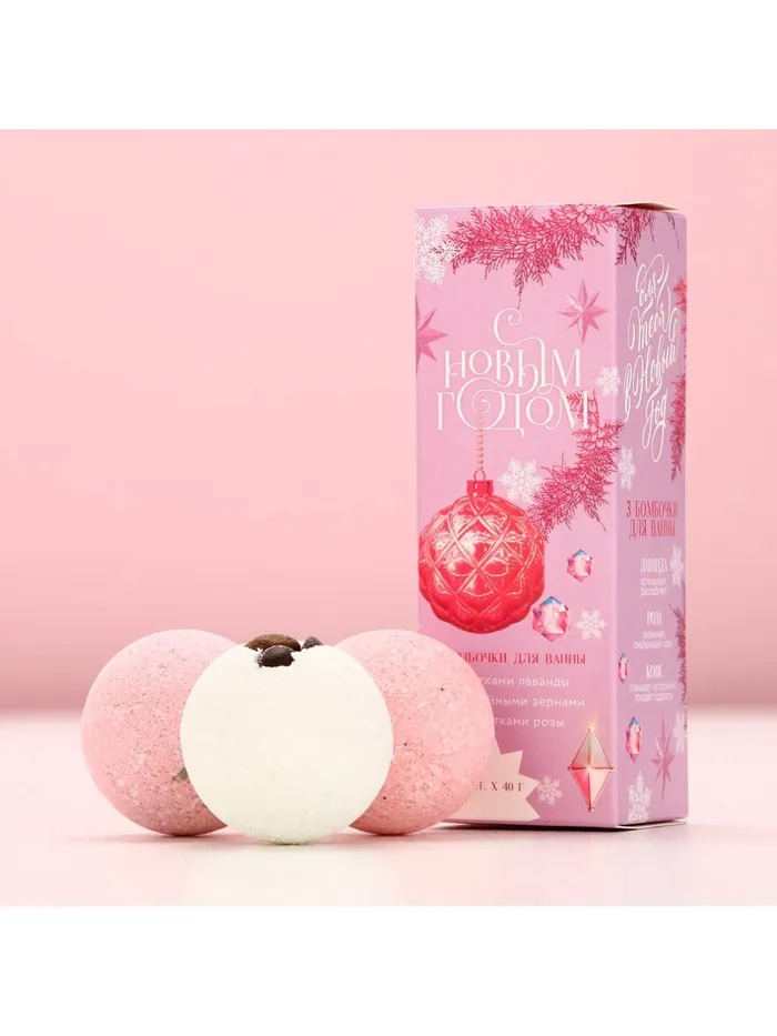 Бомбочки для ванны с добавками «С Новым годом!», 3×40 г, аромат лаванда, роза, кофе, Чистое счастье