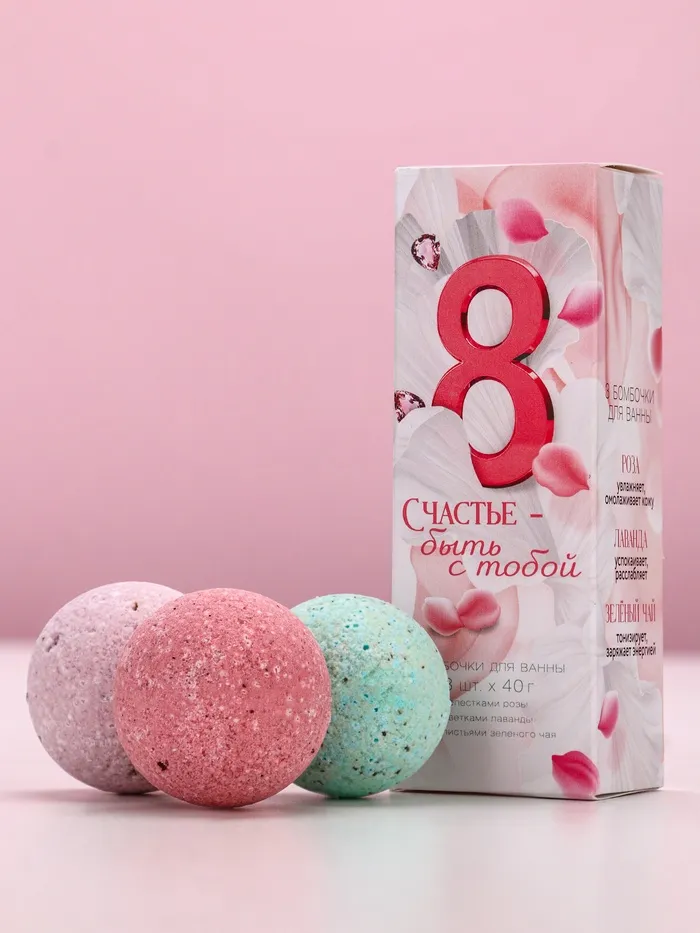 Бомбочки для ванны с добавками «8 Марта», 3×40 г, Чистое счастье