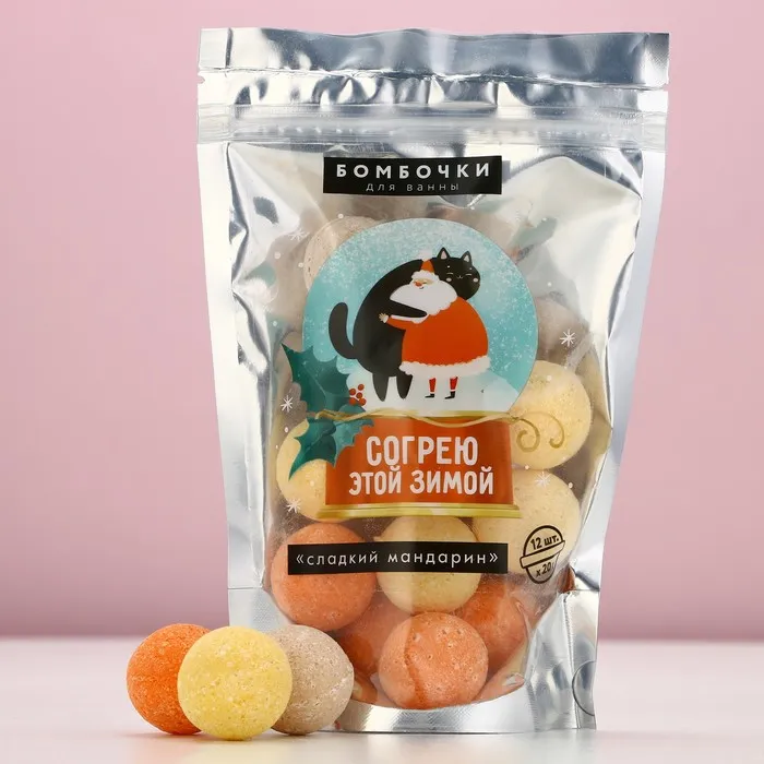 Бомбочки для ванны «Согрею этой зимой!», 12×20 г, аромат мандарина, Чистое счастье