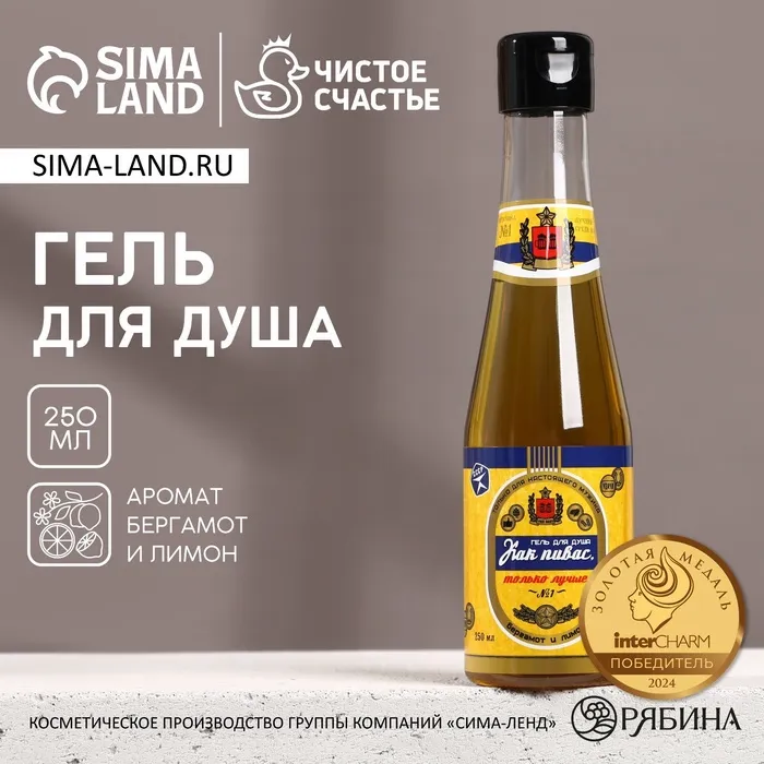 Гель для душа пиво «Первому во всём», 250 мл, аромат бергамота и лимона, HARD LINE