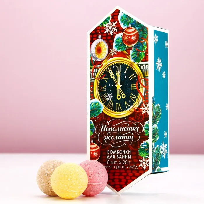 Бомбочки для ванны «Исполнения желаний», аромат роза, мед, ваниль, 8×20 г, Чистое счастье
