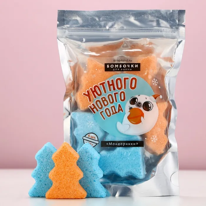 Бомбочки для ванны «Уютного Нового Года», 6×30 г, аромат мандарин, Чистое счастье