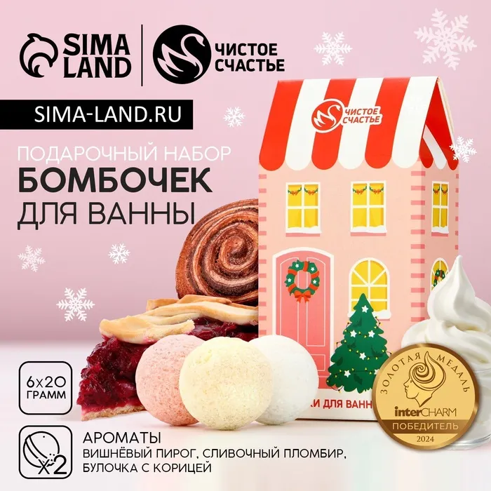 Бомбочки для ванны «С праздником», 6×20 г, аромат вишня, пломбир, булочка, Чистое счастье
