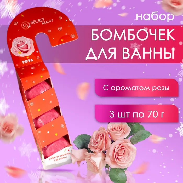 Новогодний подарочный набор косметики. Бомбочки для ванны «Леденец», красный, 3 шт по 70
