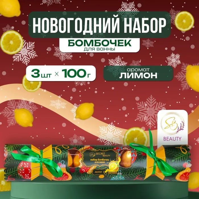 Новогодний подарочный набор косметики. Бомбочки для ванны «Конфета», золотой, 3 шт по 100