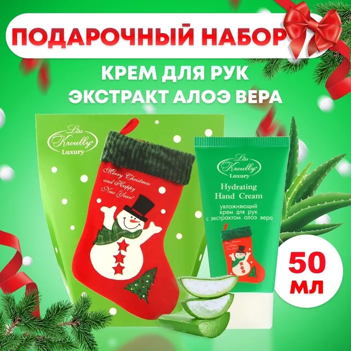 Подарочный набор косметики Liss Kroully: крем для рук "Новогодний носок", увлажняющий с экстрактом алоэ вера, 50 мл